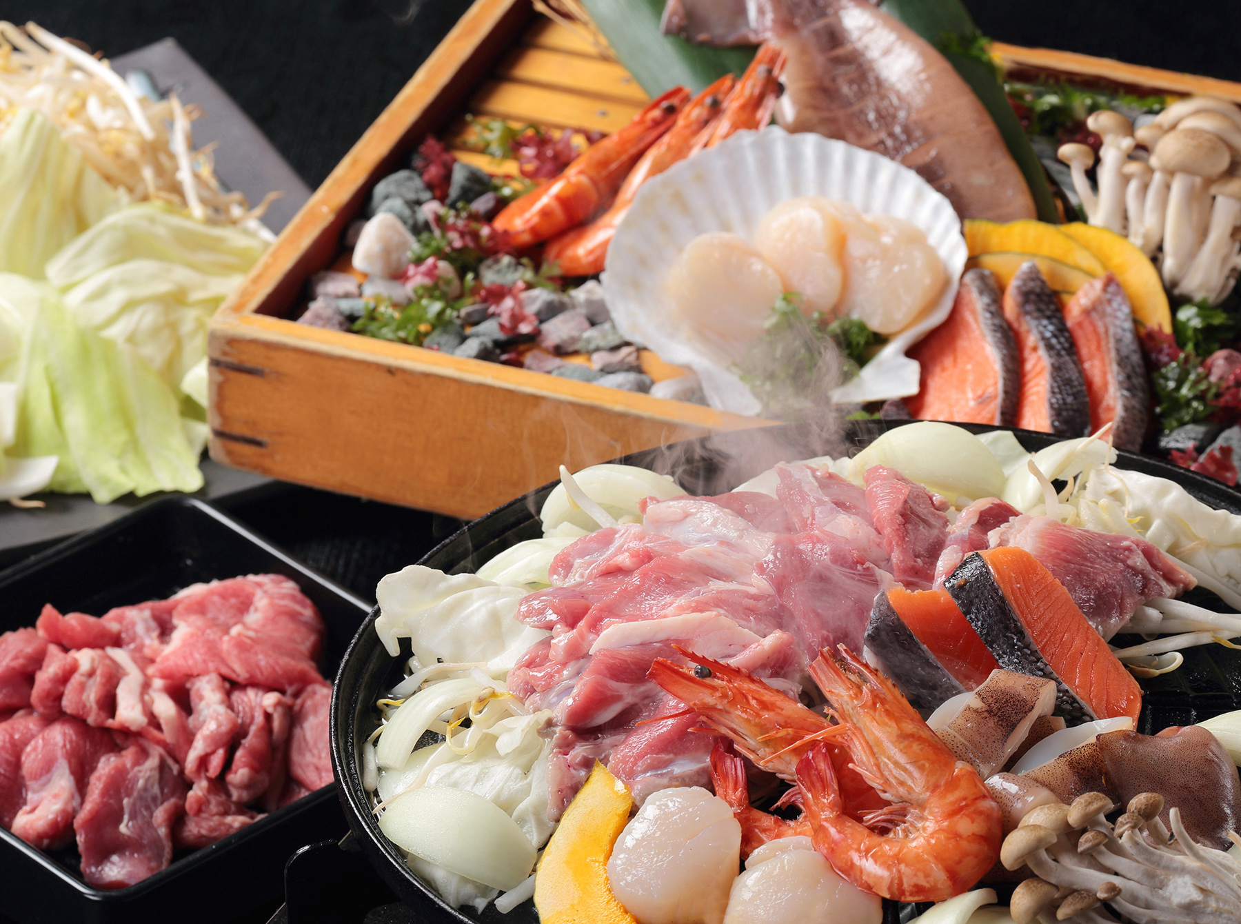 ご希望のお客様はプラン選択時に「生ラムジンギスカンと海鮮焼き食べ放題」をお選びください。